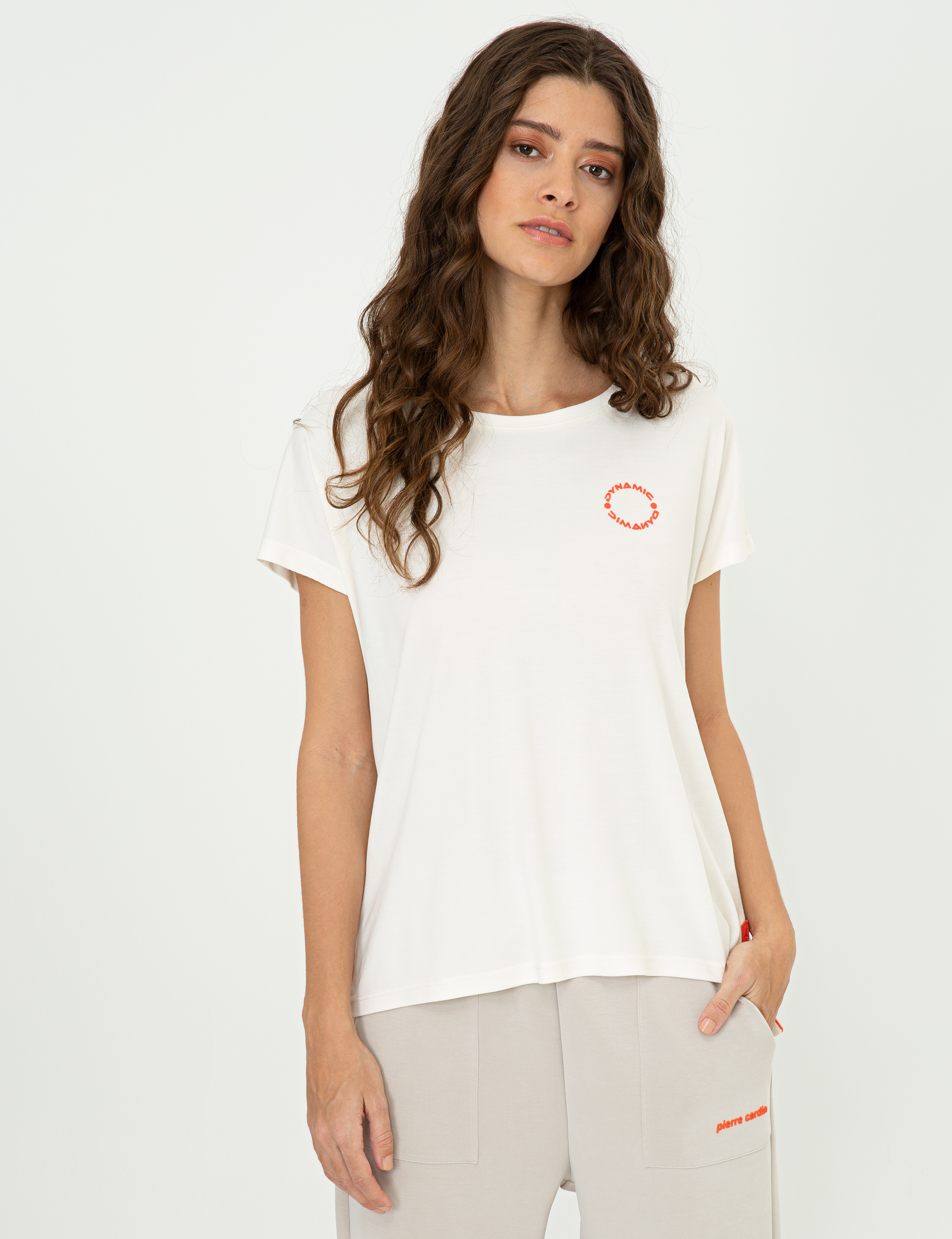 Ekru Standart Fit Bisiklet Yaka Tişört