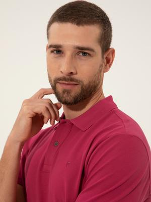 Fuşya Slim Fit Polo Yaka Basic Tişört