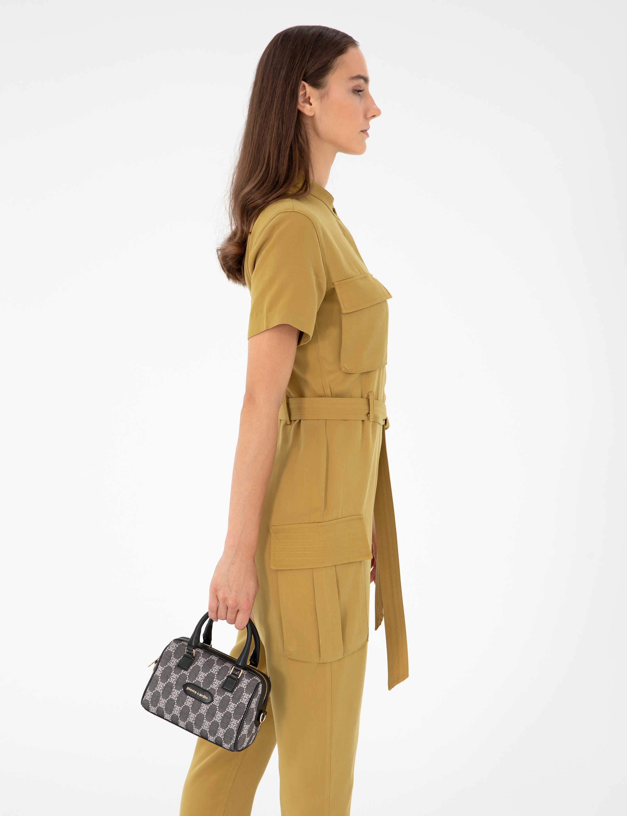 Ayarlanabilir ve çıkarılabilir omuz askısı mevcuttur. Genişlik x Yükseklik x Derinlik: 18x16x7 cm'dir. Fermuarlı kapama özelliğine sahiptir. İçerisinde 1 adet fermuarlı iç cep bulunmaktadır.