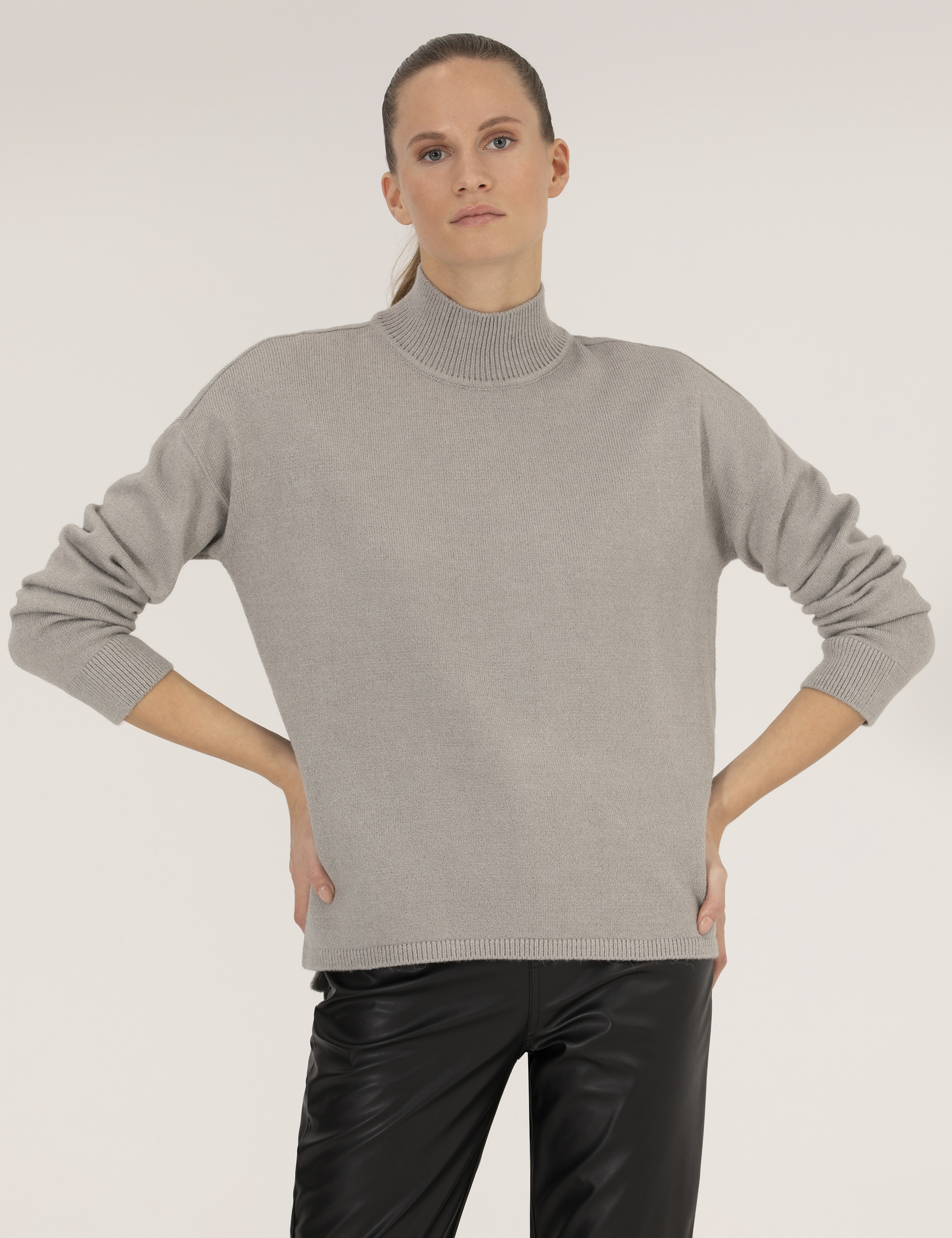 - Gri Comfort Fit Basic Balıkçı Yaka Kazak