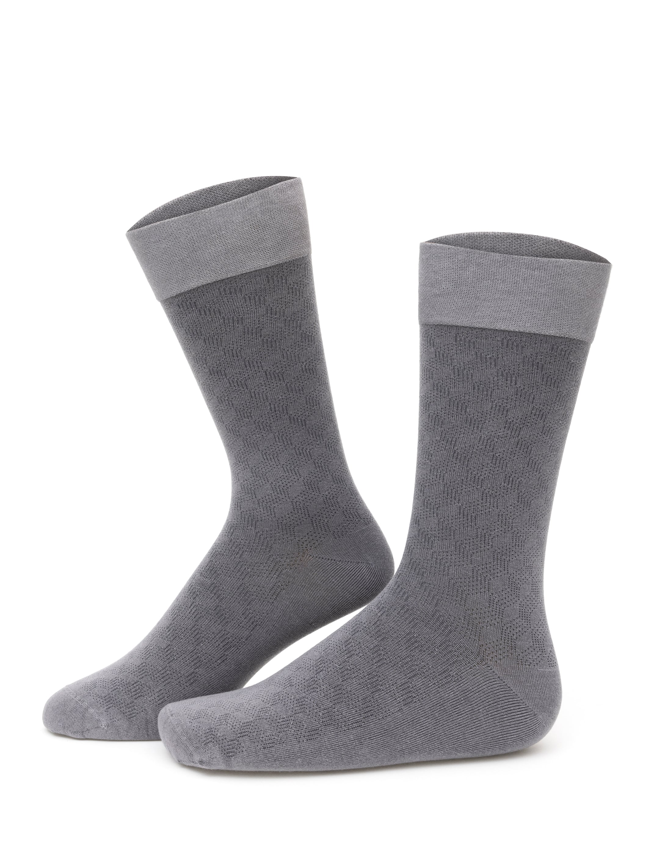 Erkek Bambu Karışımlı Gri Soket Desenli Çorap