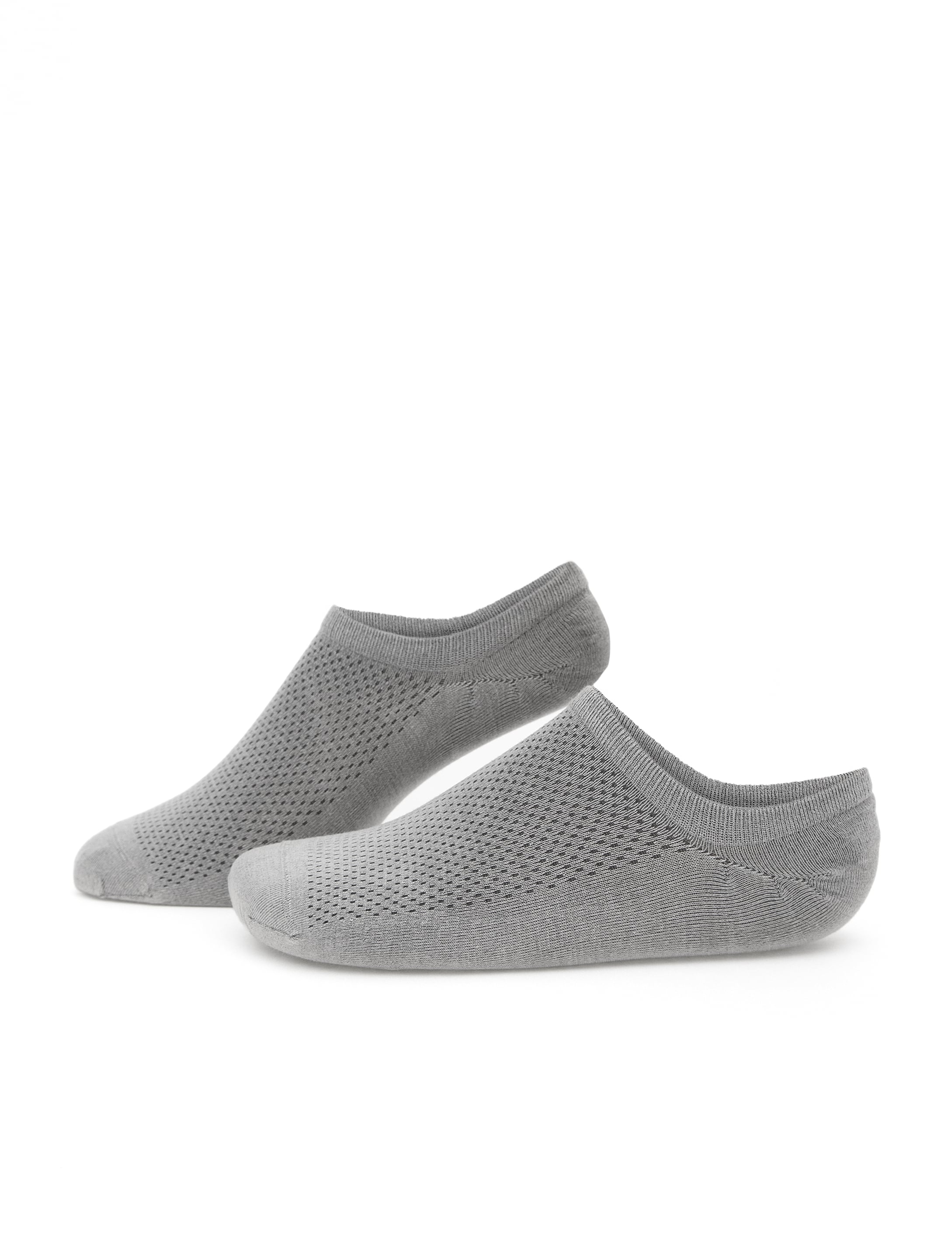 Erkek Bambu Karışımlı Gri Patik Desenli Çorap