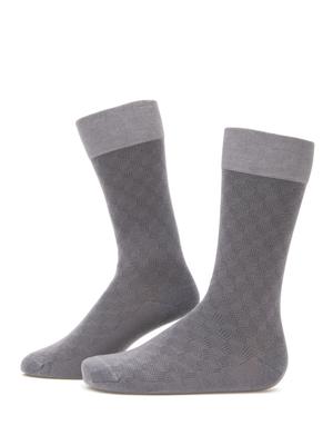 Erkek Bambu Karışımlı Gri Soket Desenli Çorap