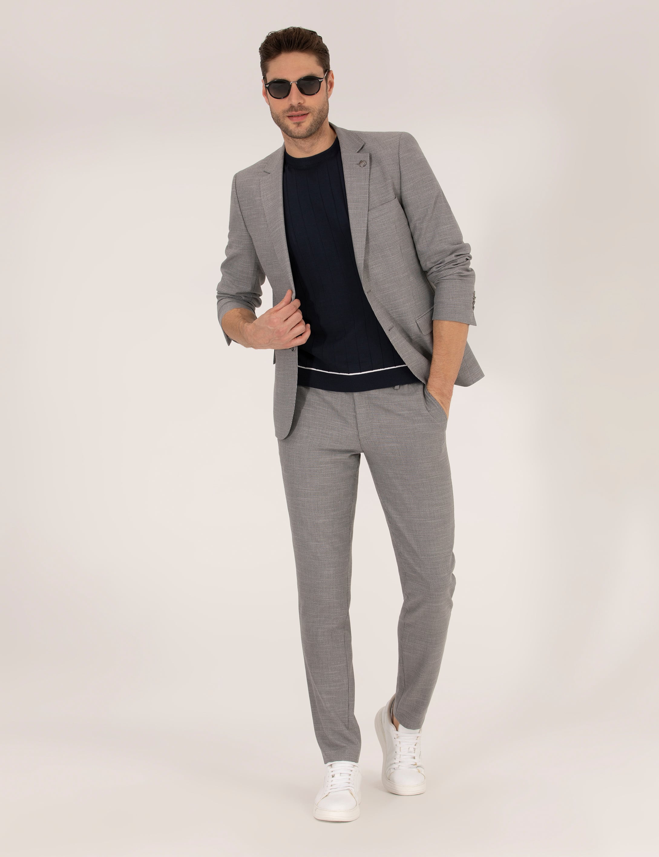 *Takım elbise modelimiz mono yaka, mikro desen ve klasik kapak ceplere sahiptir.