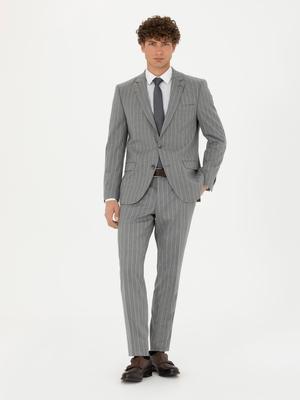 Gri Ex. Slim Fit Çizgili Takım Elbise
