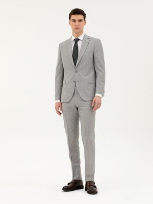 - Gri Ex. Slim Fit %100 Yün Çizgili Takım Elbise