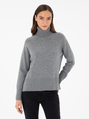 - Gri Regular Fit Balıkçı Yaka Yün Kazak
