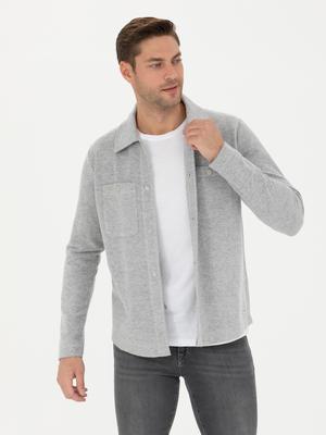 Gri Melanj Klasik Yaka Çift Cepli Regular Fit Örme Gömlek Ceket