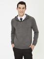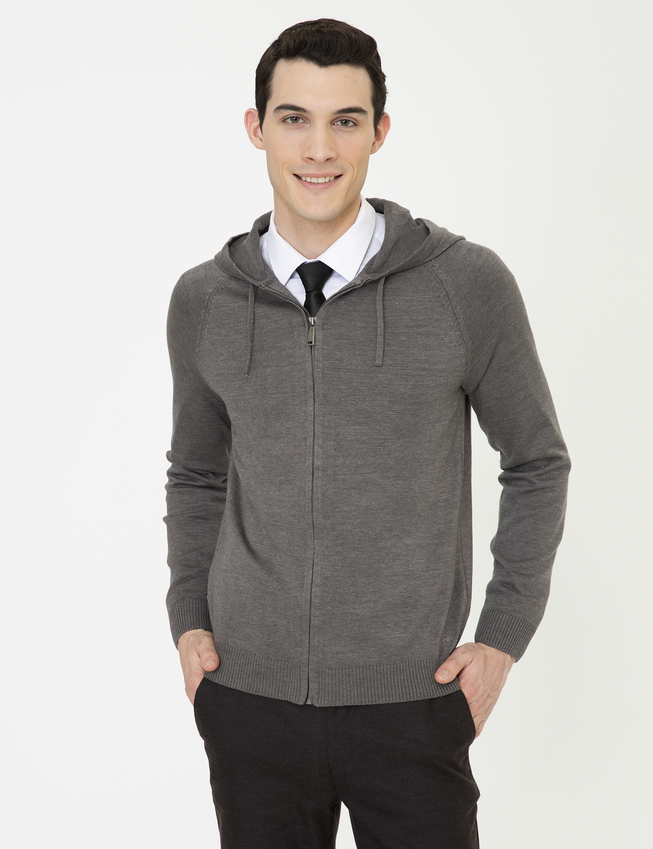 - Gri Melanj Regular Fit Fermuarlı Triko Hırka