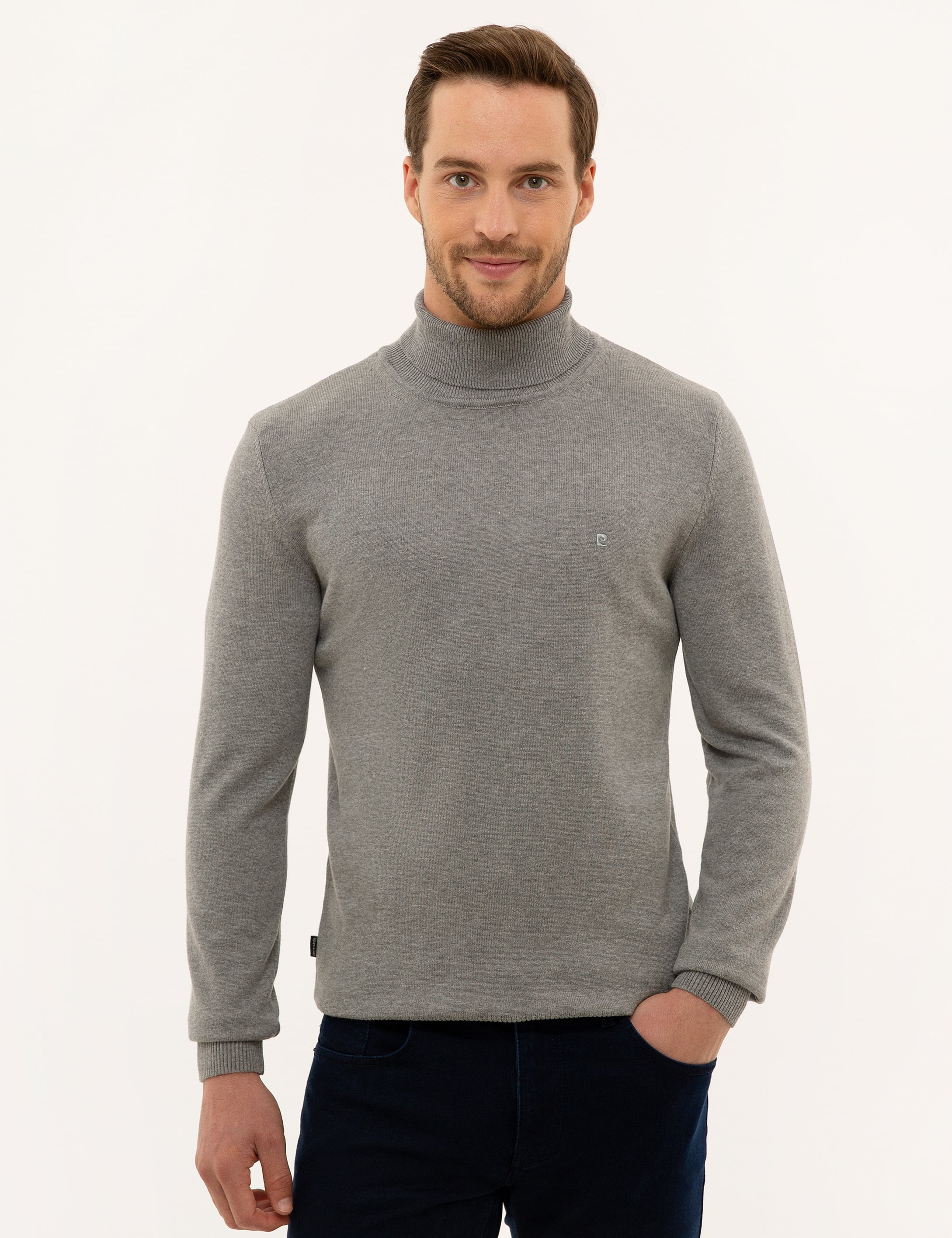 - Gri Melanj Slim Fit Balıkçı Yaka Basic Triko Kazak