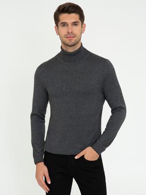 Gri Melanj Slim Fit Balıkçı Yaka Basic Triko Kazak