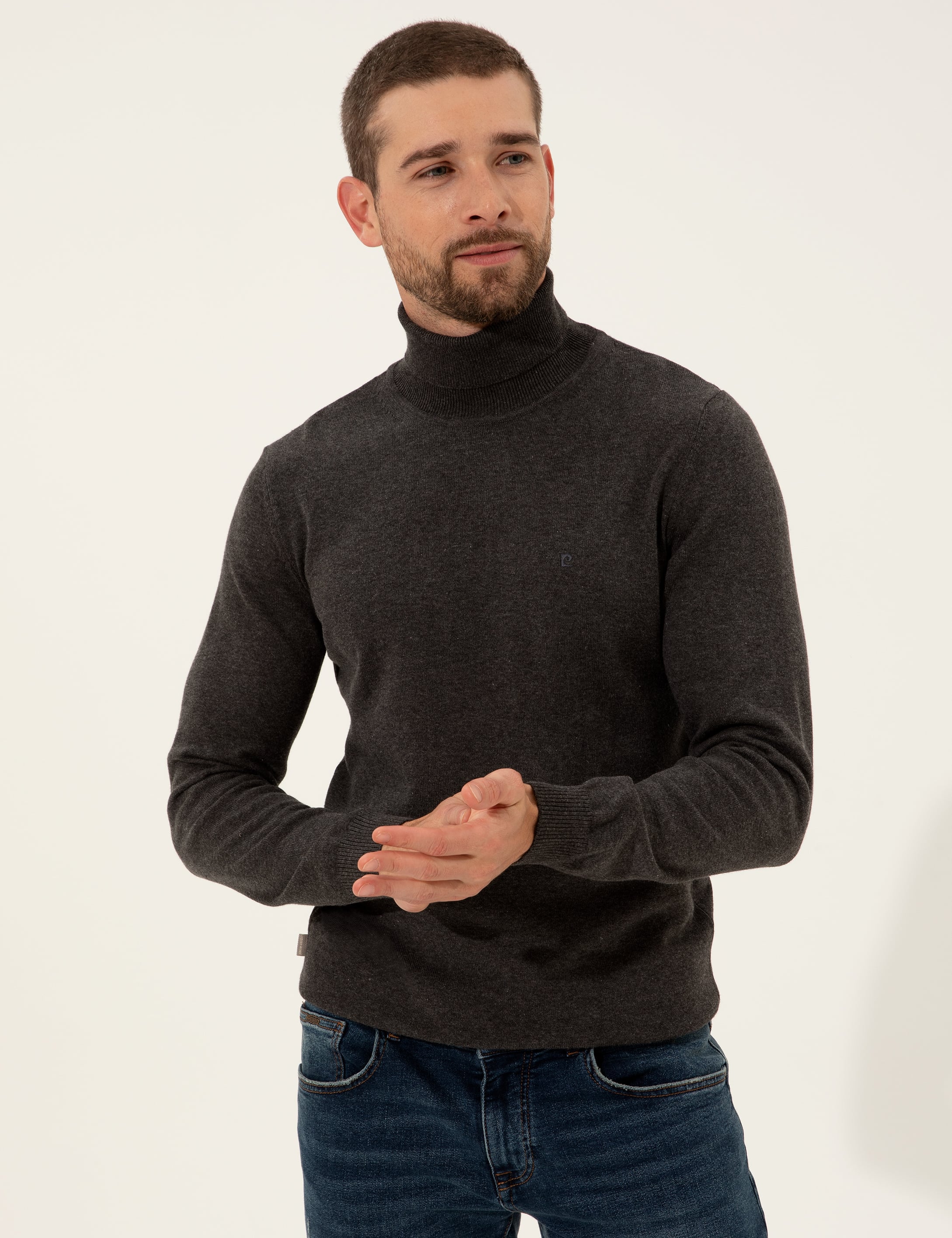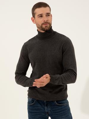 Gri Melanj Slim Fit Balıkçı Yaka Basic Triko Kazak