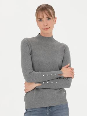 - Gri Melanj Slim Fit Yarım Balıkçı Yaka Kazak