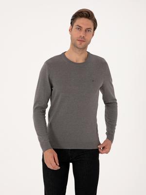 Gri Melanj Slim Fit Bisiklet Yaka Basic Triko Kazak