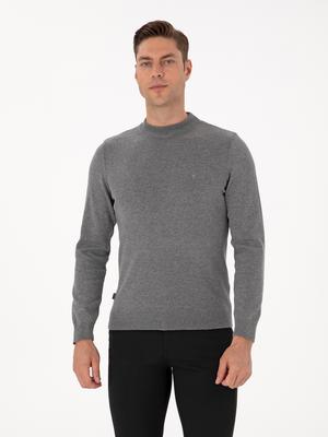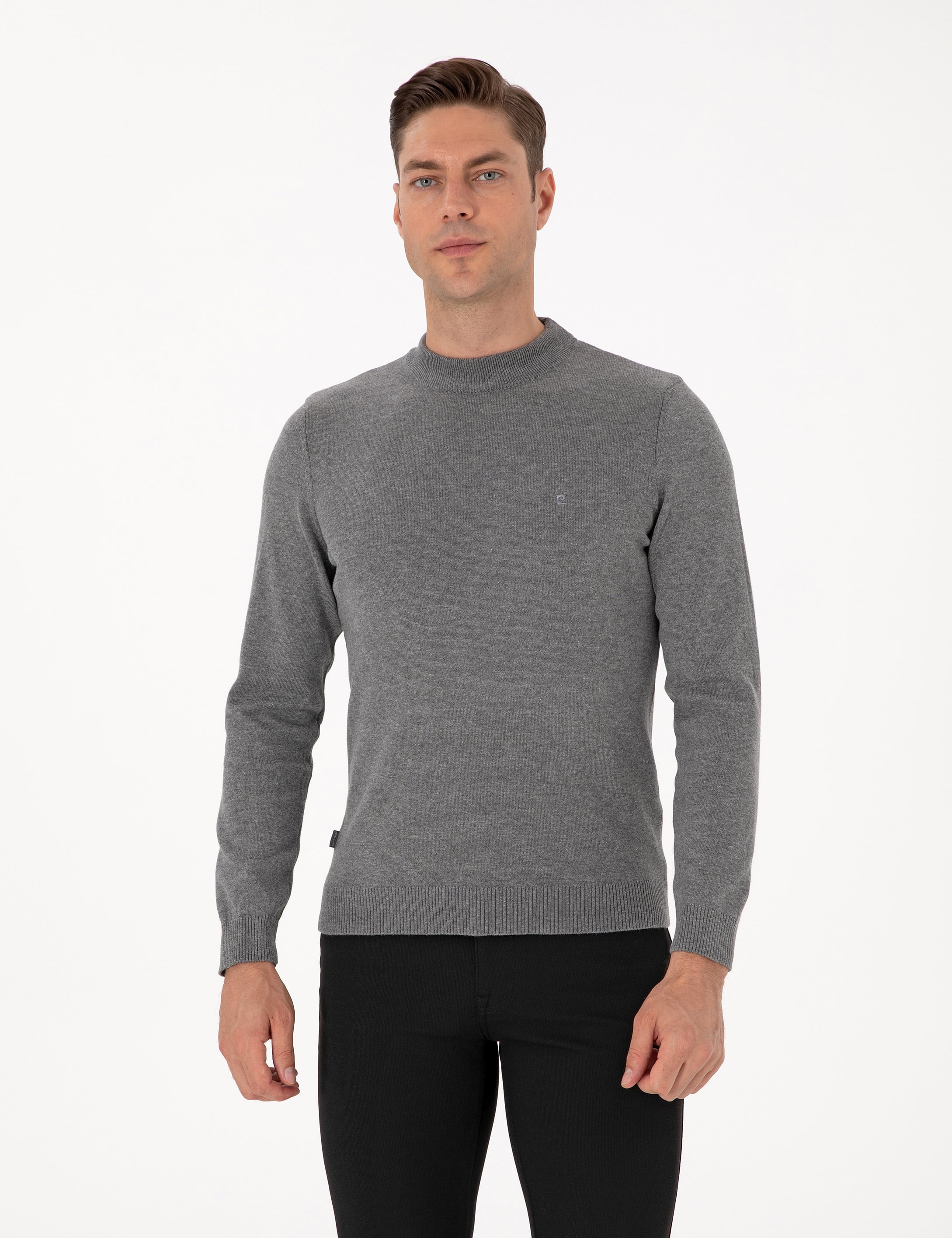 Gri Melanj Slim Fit Çeyrek Yaka Basic Triko Kazak