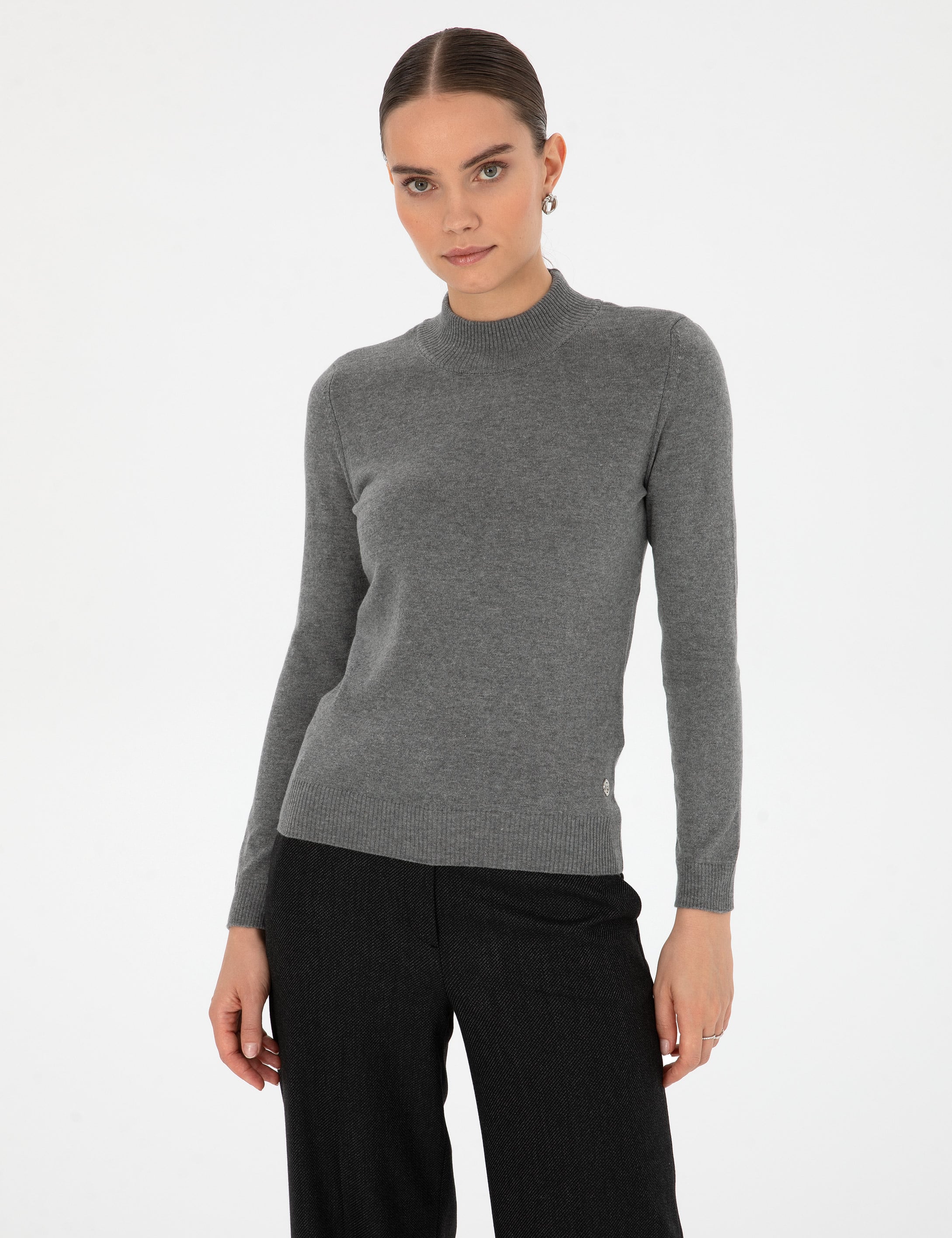 Gri Melanj Slim Fit Yarım Balıkçı Yaka Basic Kazak