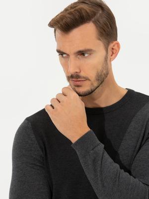 - Gri Melanj Slim Fit Bisiklet Yaka Triko Kazak