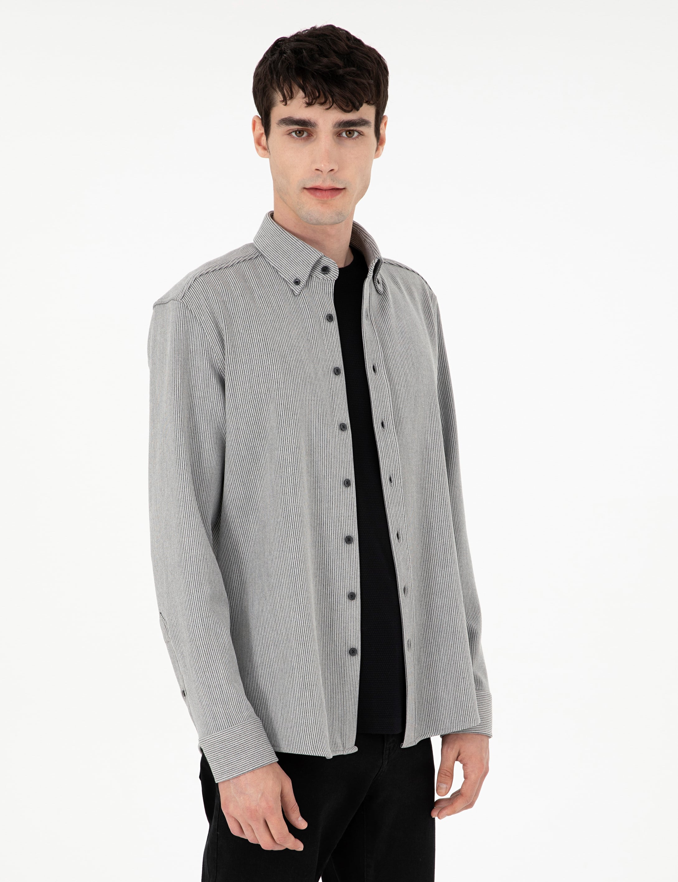 - Gri Çizgili Regular Fit Uzun Kollu Gömlek