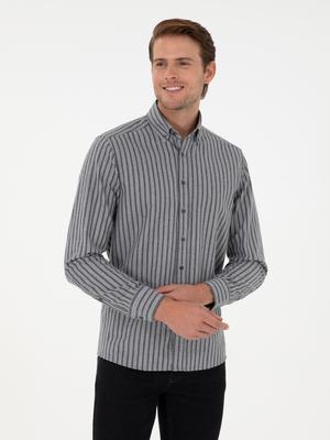 Gri tonlarında çizgili deseniyle dikkat çeken gömlek, casual ve şık görünüm isteyen erkeklerin tercihi olmaktadır. Düğmeli yaka detayı, klasik bir tarzı modern dokunuşlarla buluşturarak çok yönlü kullanım sağlamaktadır. Regular fit kesimi, rahat bir duruş sunarken cepsiz tasarımı gömleğin temiz ve düzenli görünmesini sağlar. Uzun kol tasarımı, her mevsim kullanılabilecek pratik bir seçenek sunmakta, kaliteli kumaşı ise konforlu ve dayanıklı bir deneyim yaratmaktadır.