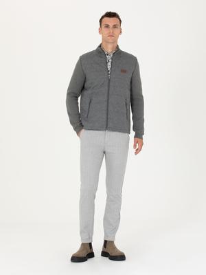 Gri Slim Fit Çizgili Kanvas Pantolon