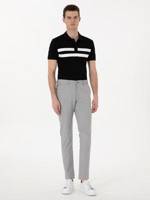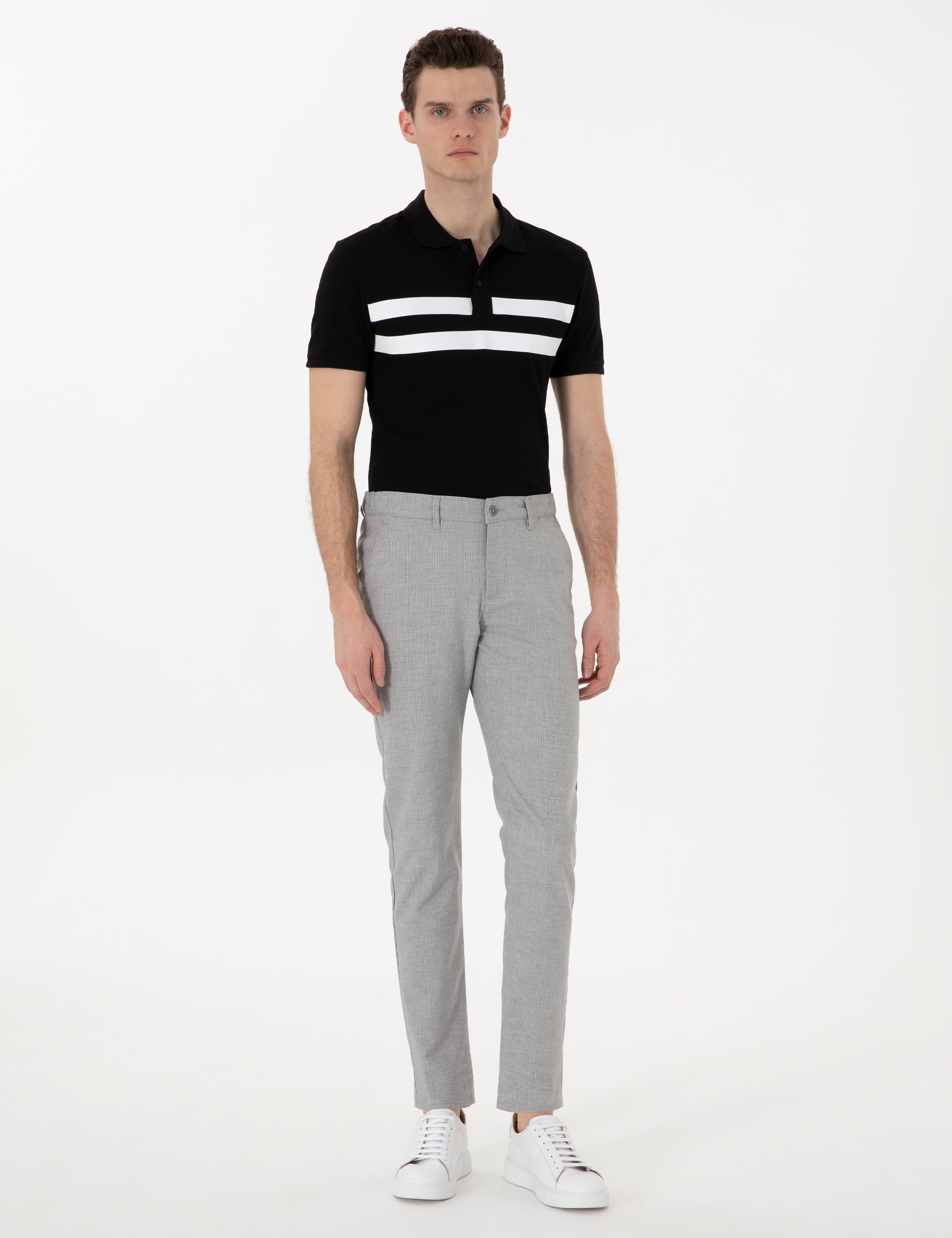 Gri Slim Fit Beli Lastikli Çizgili Kanvas Pantolon