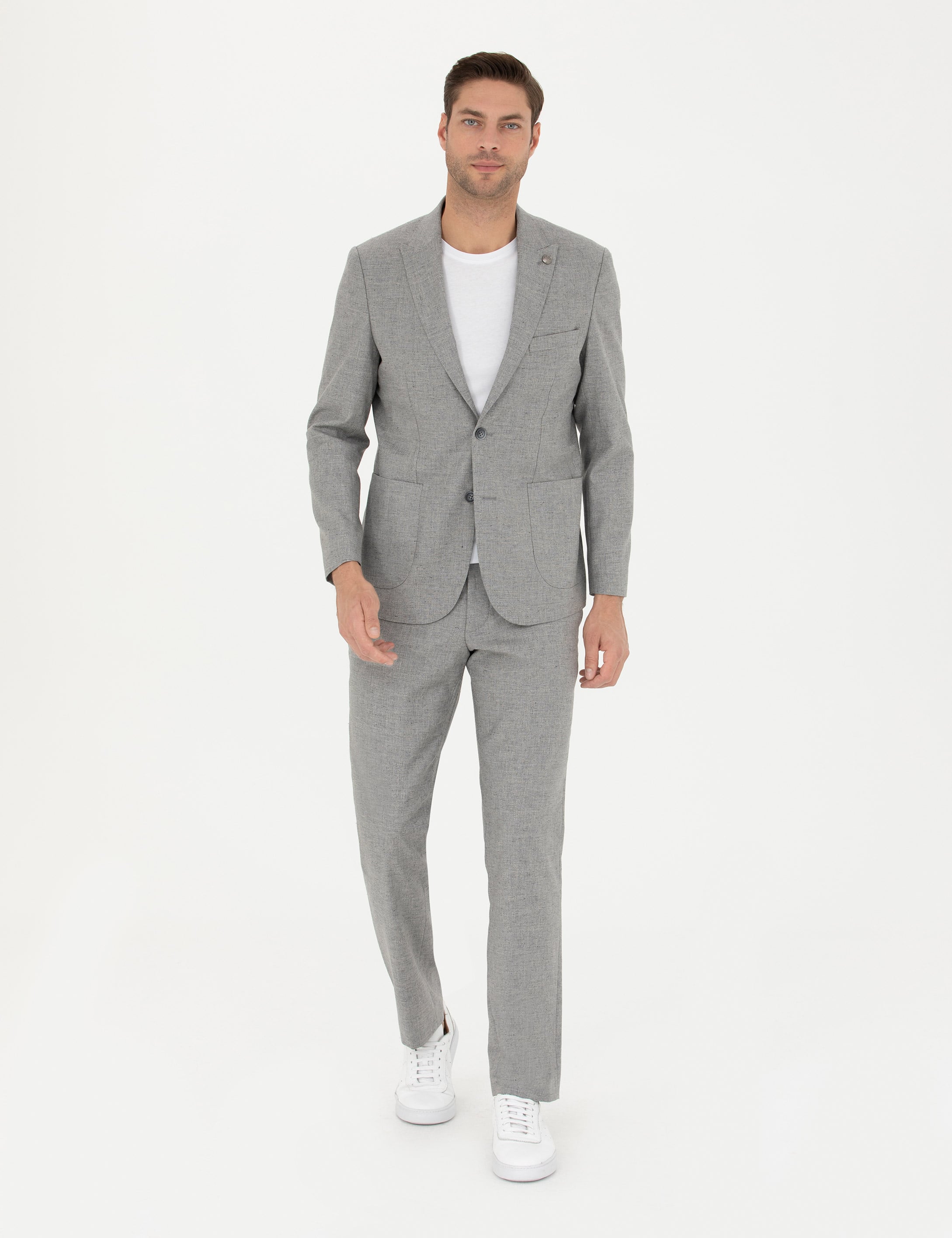 Gri Slim Fit Yün Karışımlı Takım Elbise