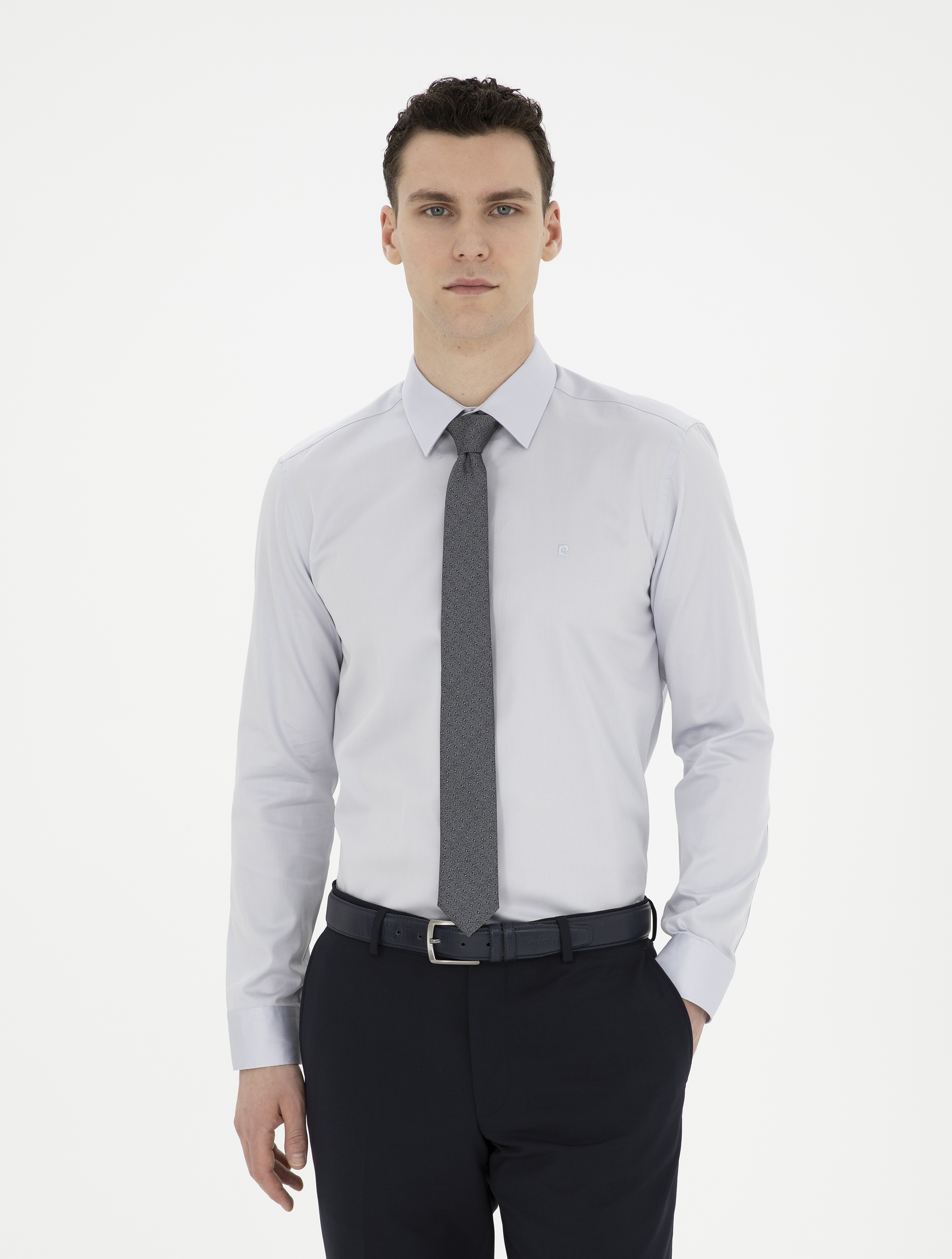 Gri Slim Fit Uzun Kollu Basic Gömlek