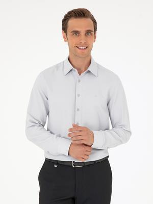 Gri Armürlü Slim Fit Uzun Kollu Gömlek