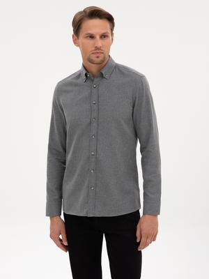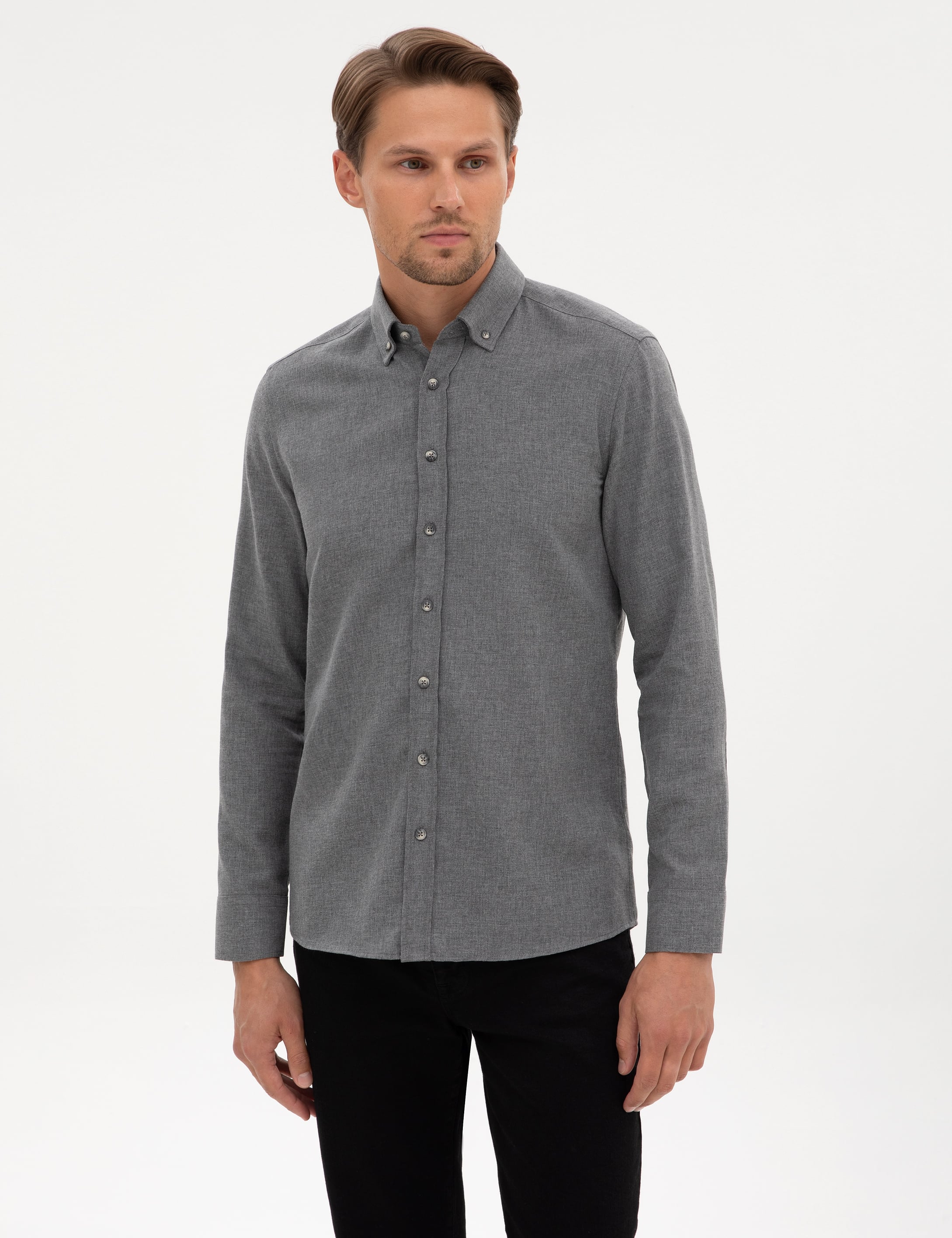 Gri Flanel Dokulu Slim Fit Uzun Kollu Gömlek