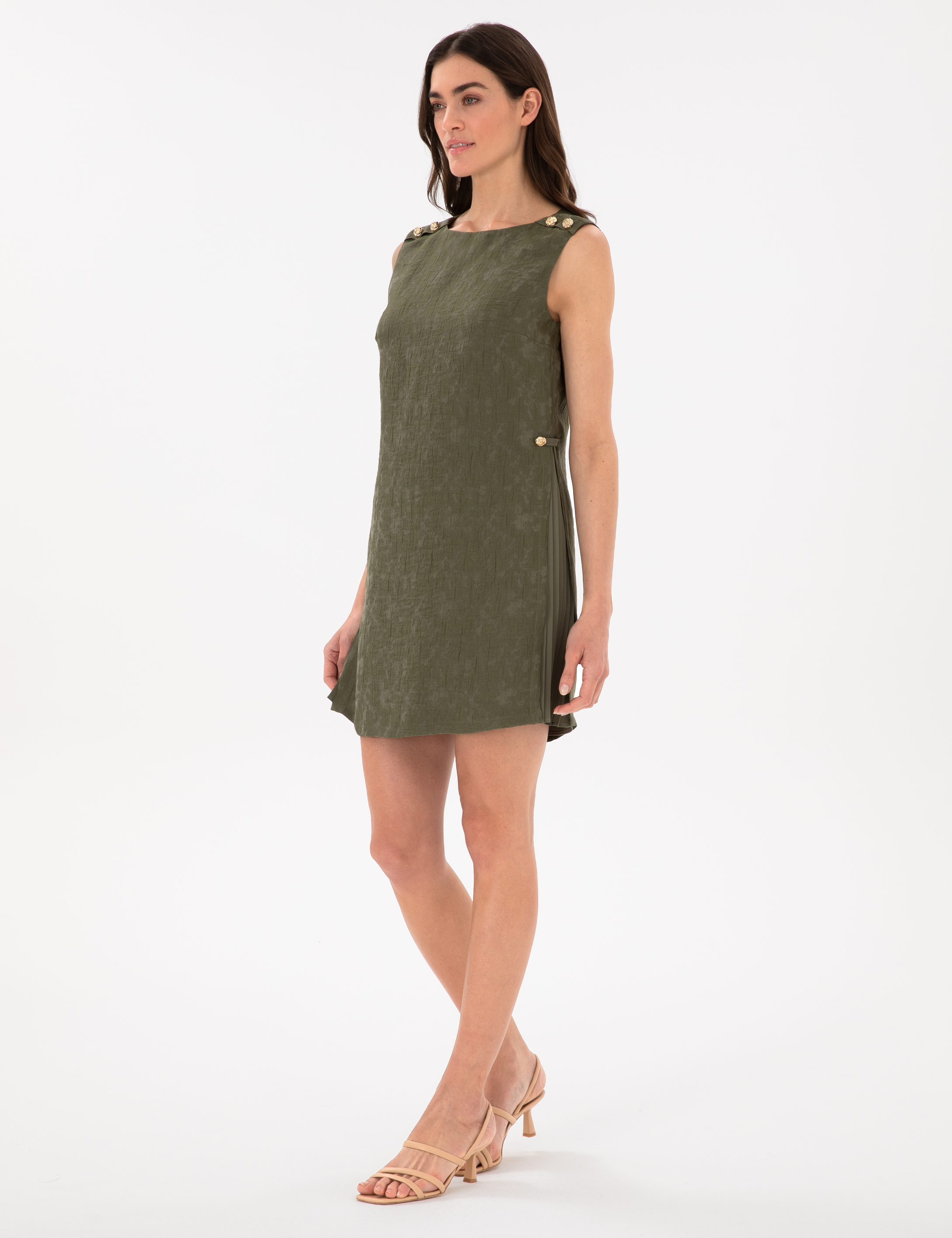 Haki A Kesim Dokuma Elbise