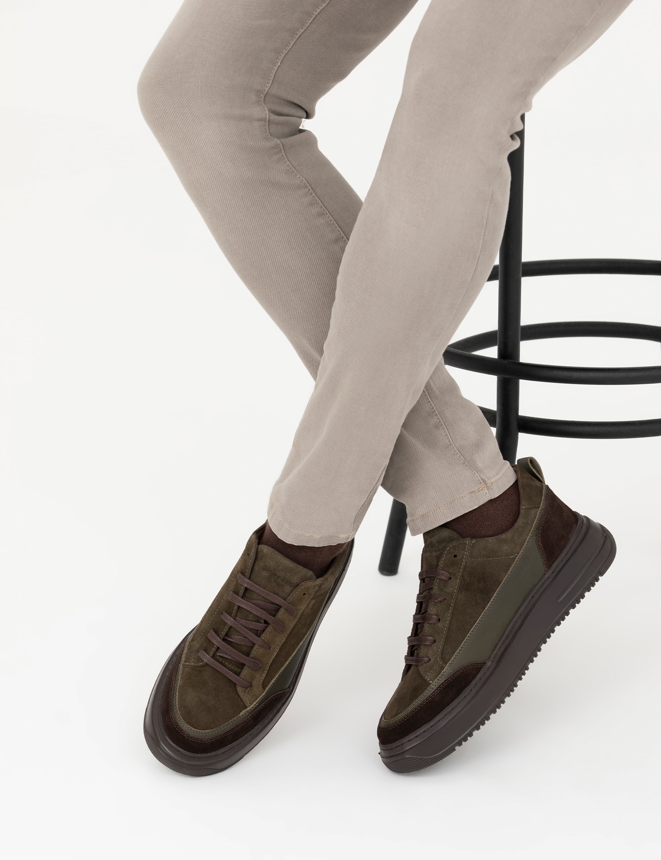 Casual tasarım çizgileriyle birleşen düz bağcıklı üst yüzey, modern ve sade bir görünüm yaratır. Haki tonu; koyu jean, bej chino veya lacivert pantolonlarla uyum içinde kullanılarak hem şehir stilinizi hem de hafta sonu rahatlığınızı tamamlar. Kauçuk dış tabanı, çeşitli zeminlerde güvenli tutuş sağlarken esnek yapısı doğal adım akışınızı destekler.