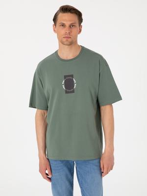 Haki Comfort Fit Bisiklet Yaka Tişört