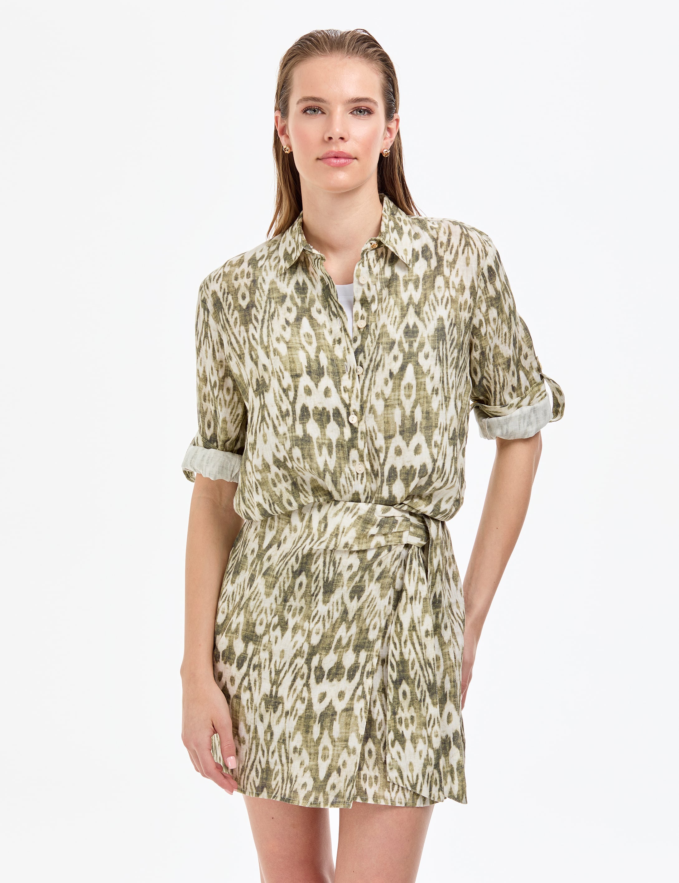 - Haki Comfort Fit Uzun Kollu Keten Gömlek