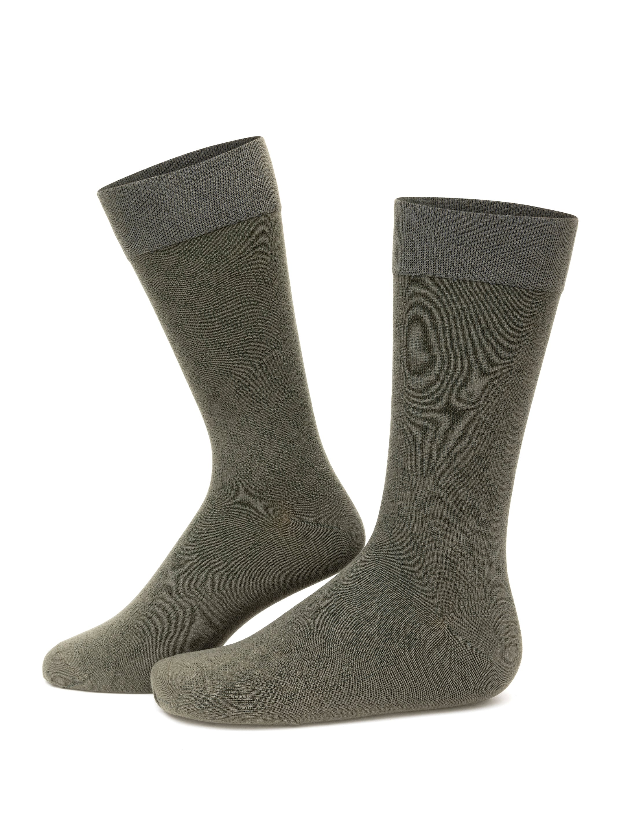 Erkek Bambu Karışımlı Haki Soket Desenli Çorap