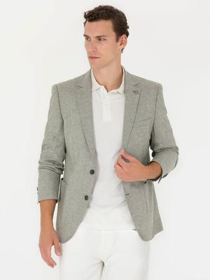 Haki Ex. Slim Fit Keten Karışımlı Blazer Ceket
