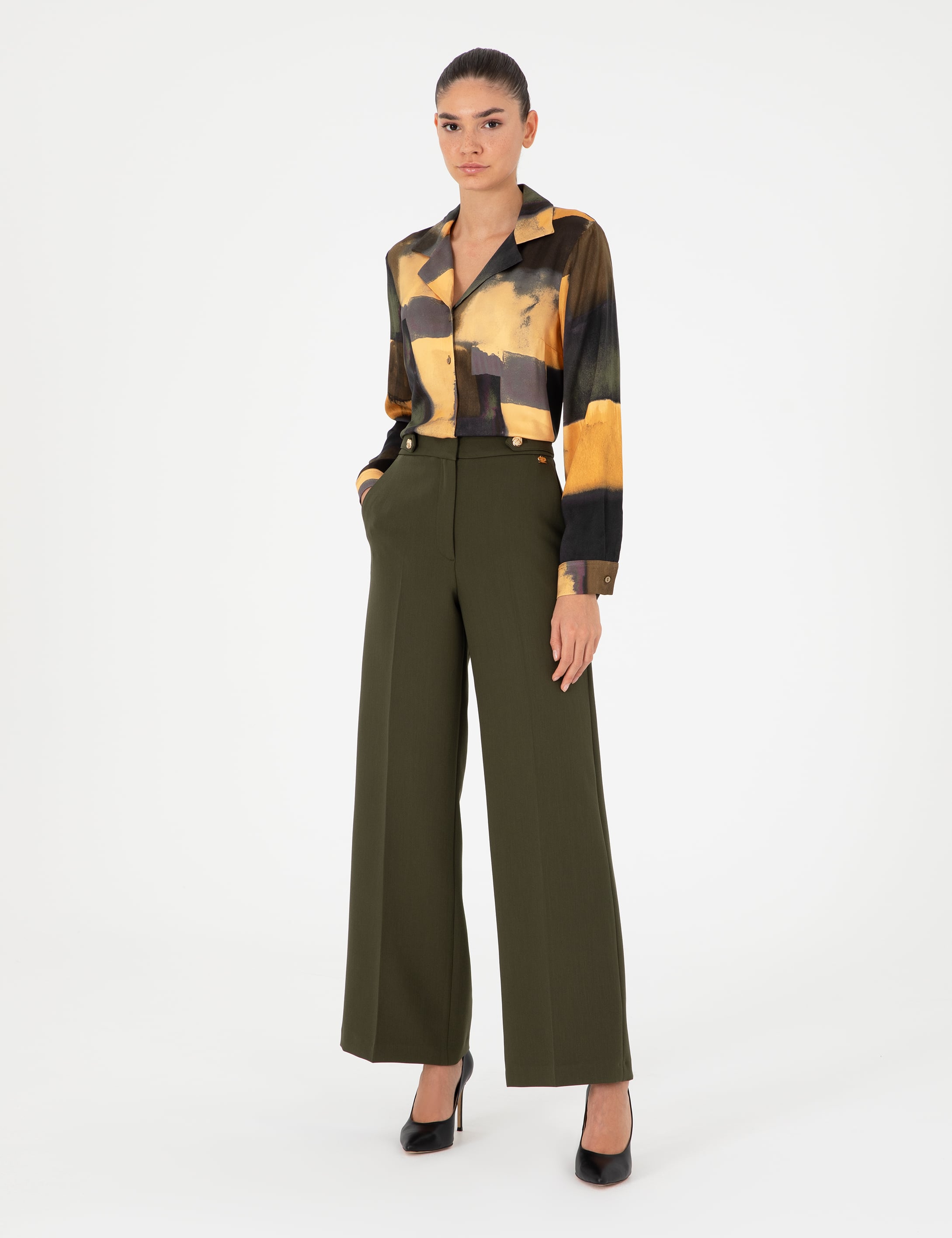 - Haki Palazzo Kumaş Pantolon