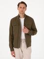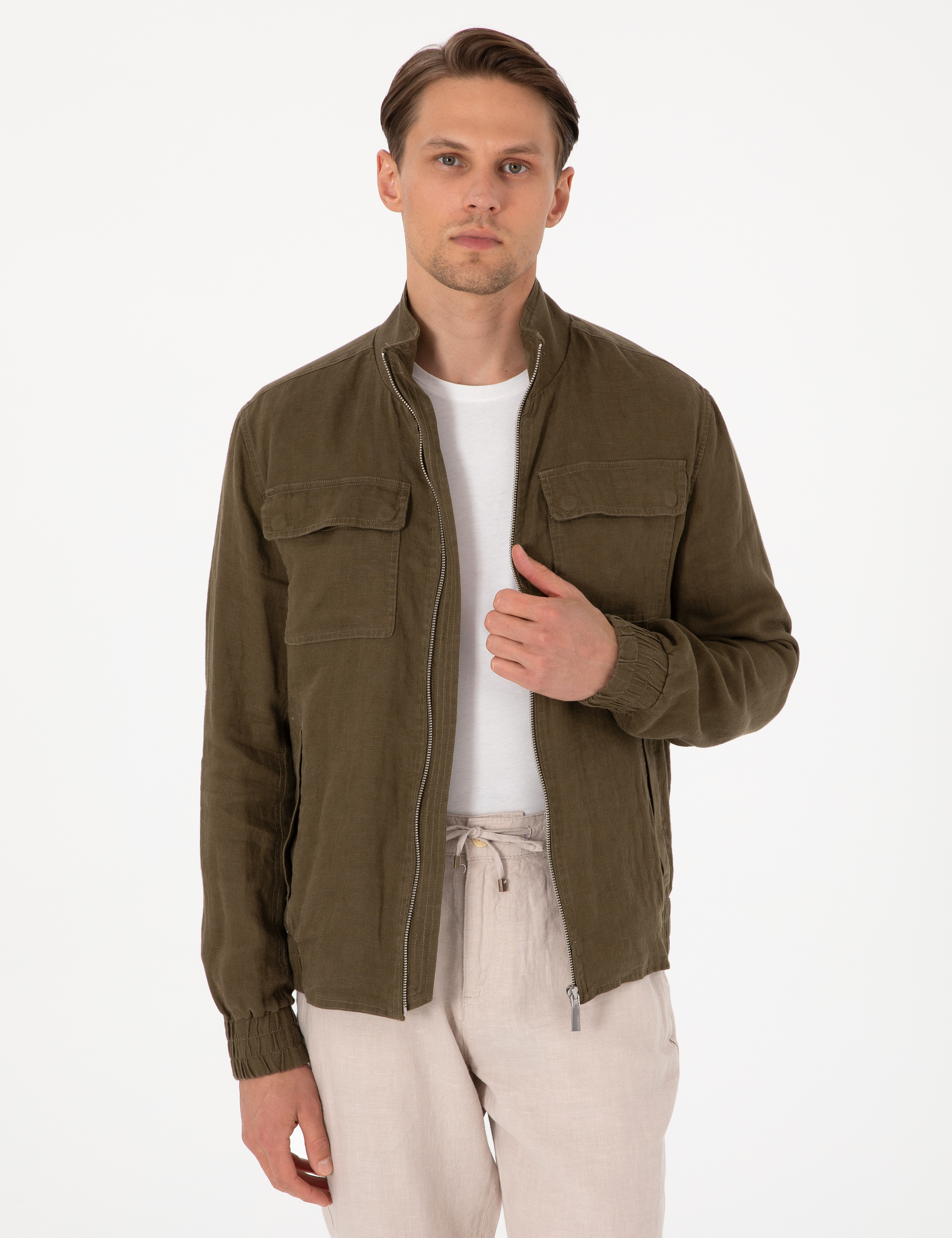 Haki Hakim Yaka Keten Mevsimlik Mont