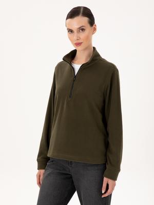 Haki Comfort Fit Fermuarlı Polar Sweatshirt