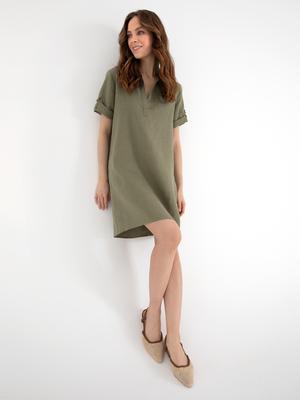 Haki Regular Fit Keten Kısa Dokuma Elbise