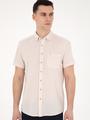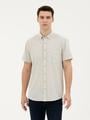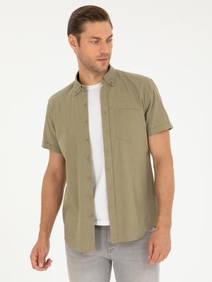 Haki Keten Karışımlı Regular Fit Kısa Kollu Gömlek