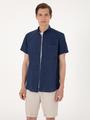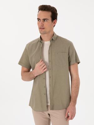 Haki Keten Karışımlı Regular Fit Kısa Kollu Gömlek