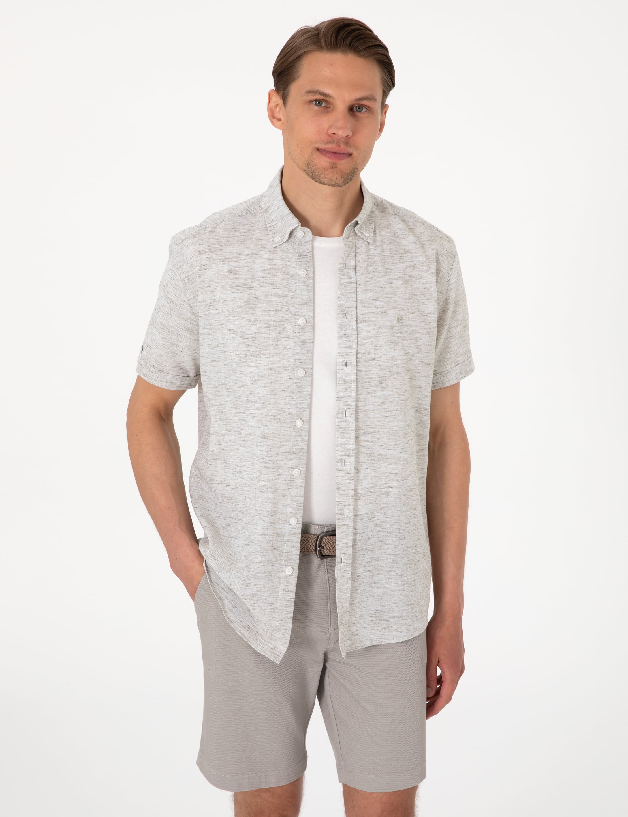 Haki Keten Karışımlı Regular Fit Kısa Kollu Gömlek