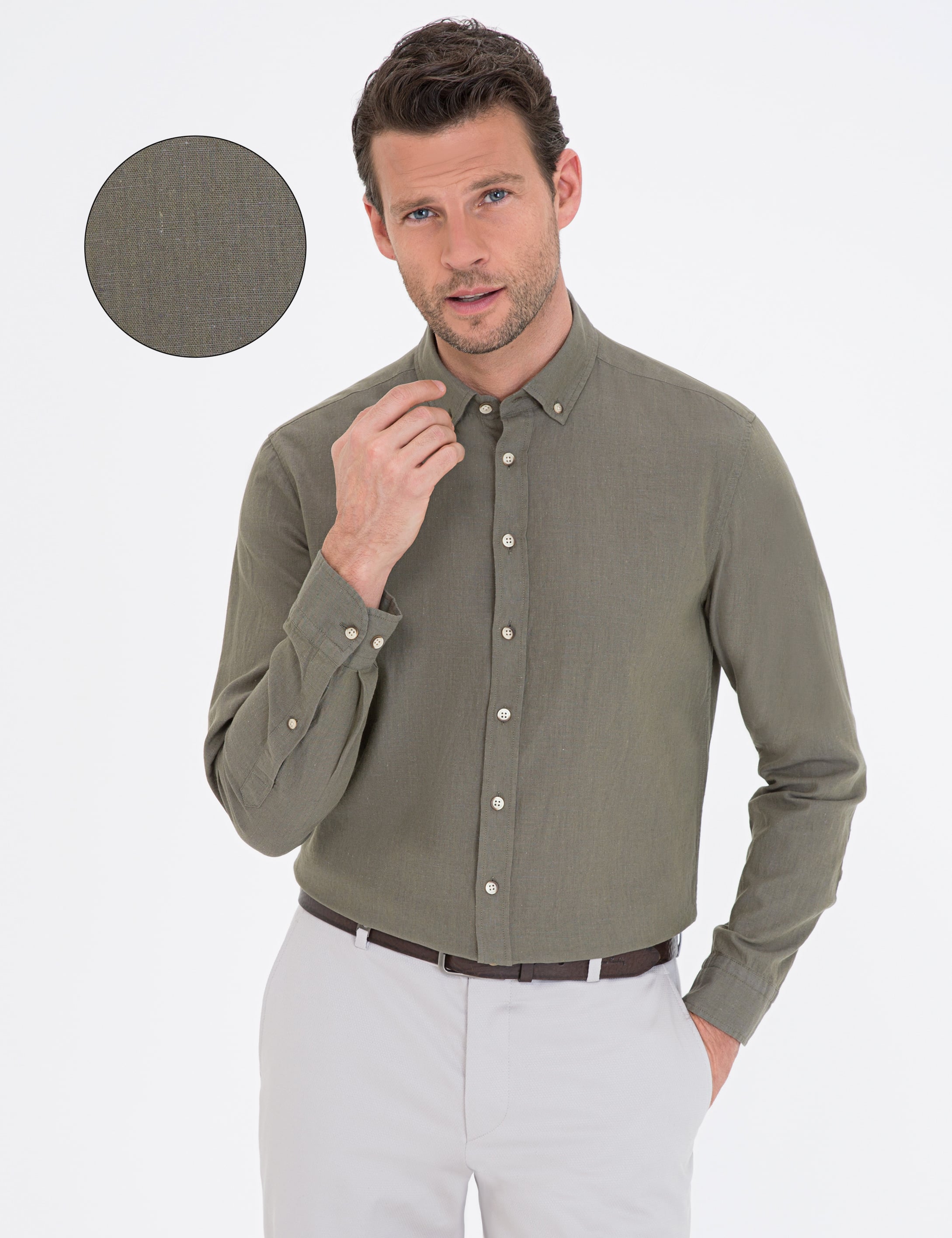 Haki Regular Fit Uzun Kollu Gömlek