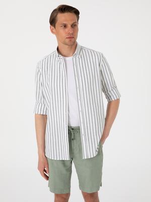 Haki Regular Fit Çizgili Uzun Kollu Gömlek