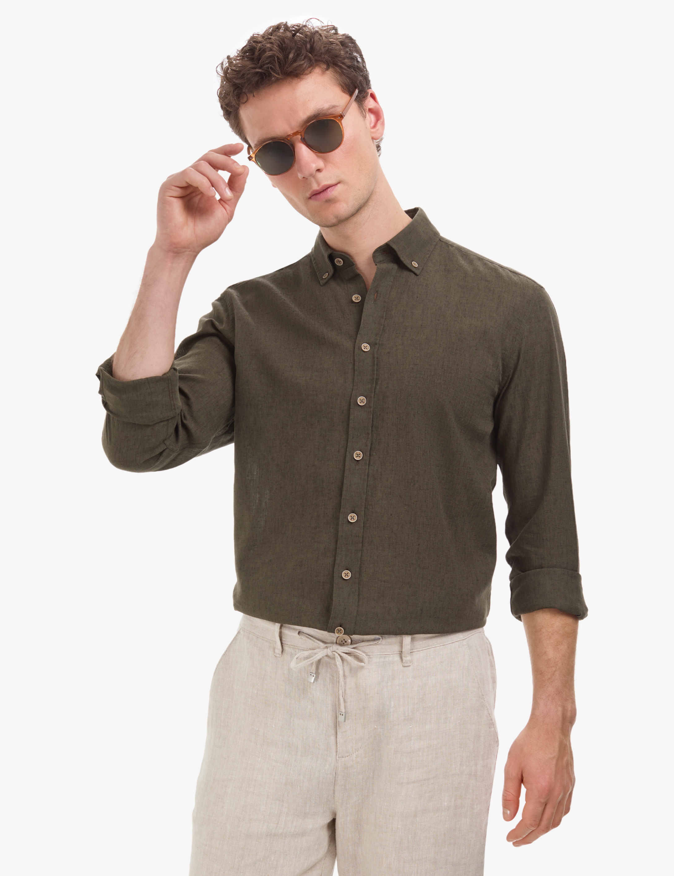 Haki Regular Fit Uzun Kollu Gömlek