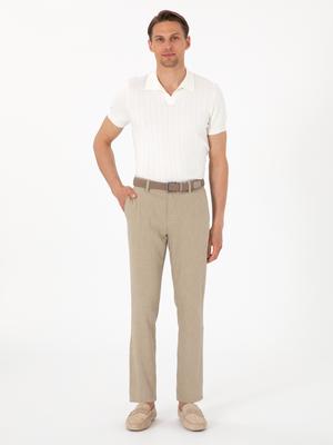 Haki Slim Fit Keten Karışımlı Çizgili Kanvas Pantolon