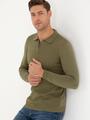 - Haki Slim Fit Fermuarlı Polo Yaka Triko Kazak