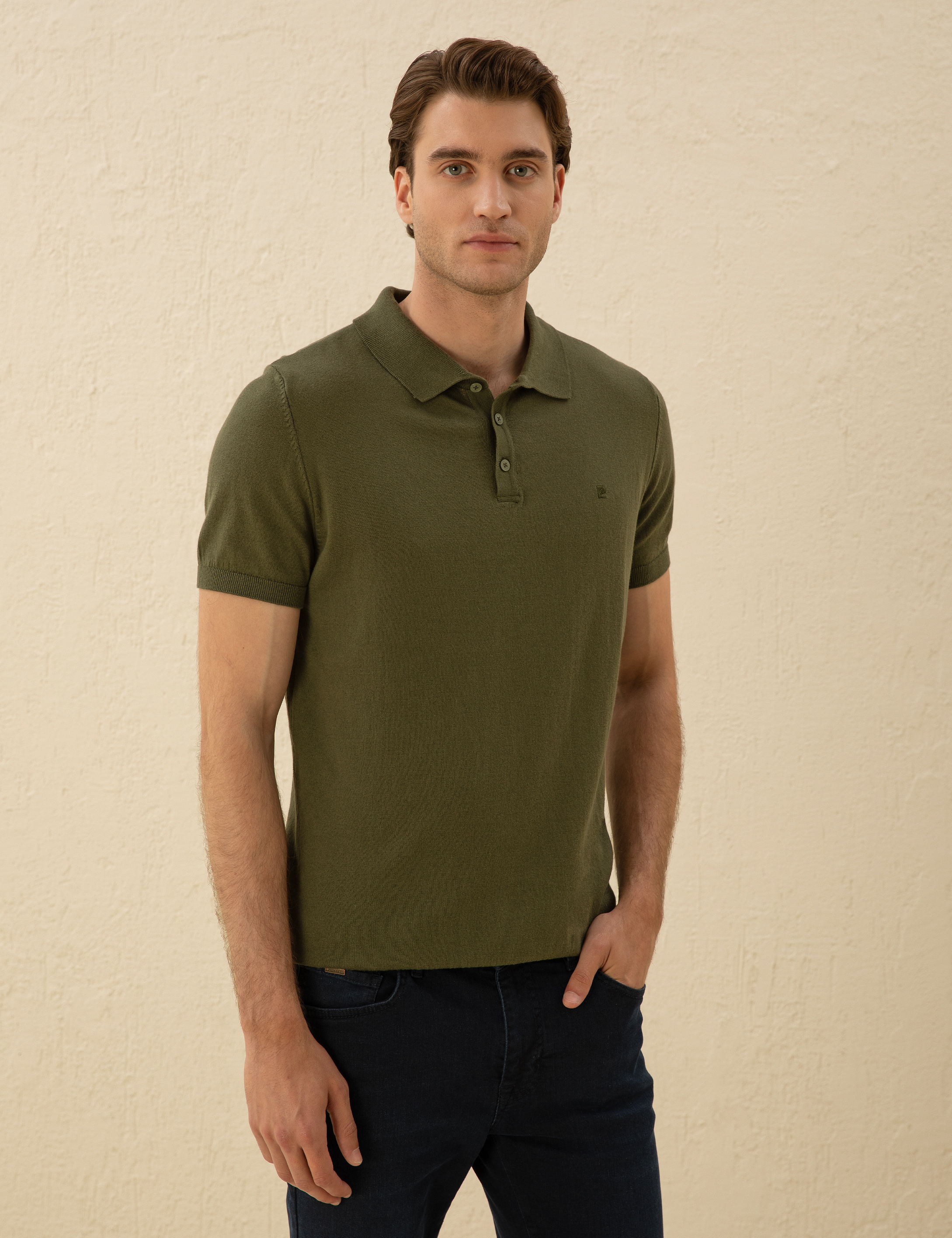 - Haki Slim Fit Düğmeli Polo Yaka Triko Tişört