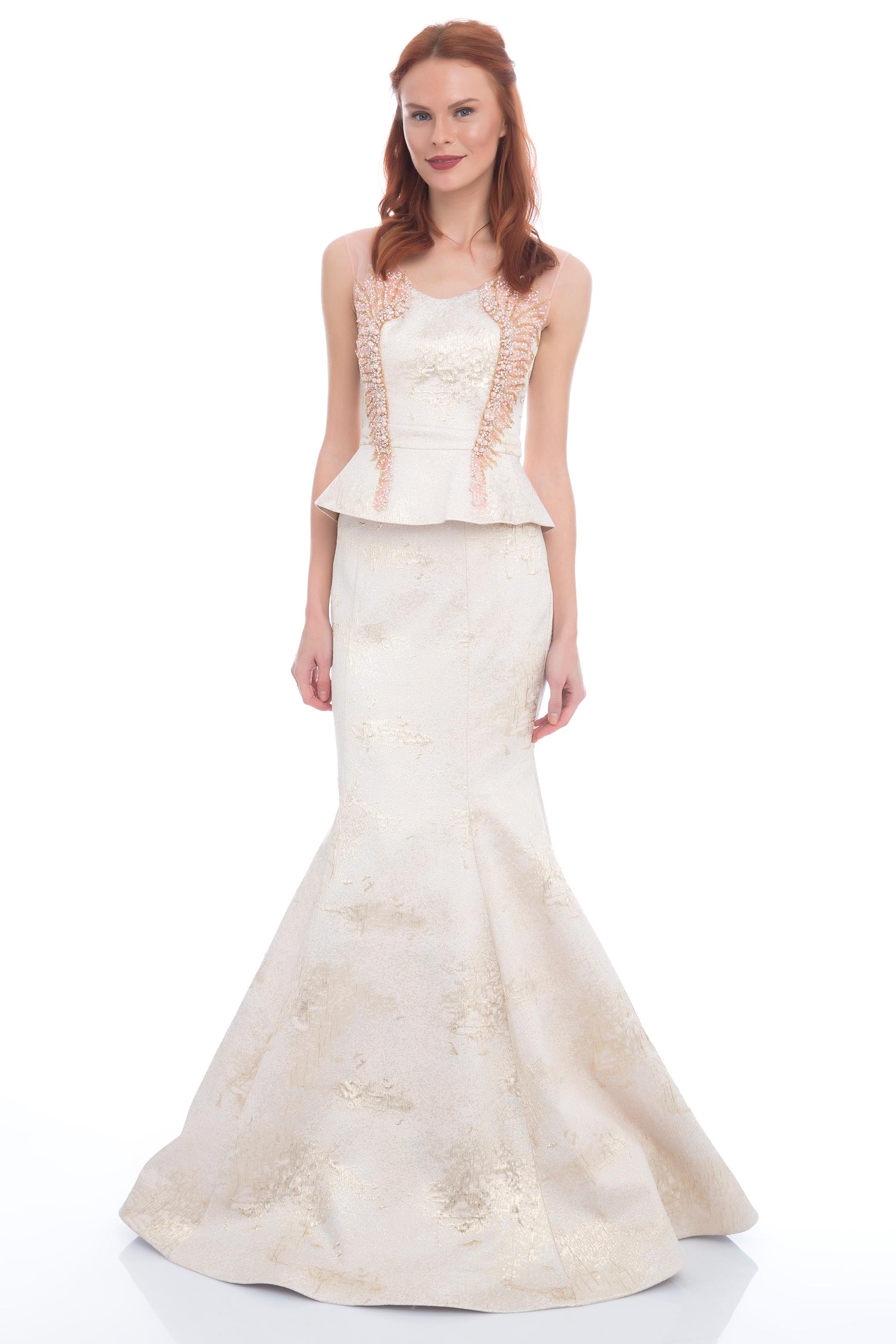 - Kol Boyu İkili Takım Balık Abiye Elbise