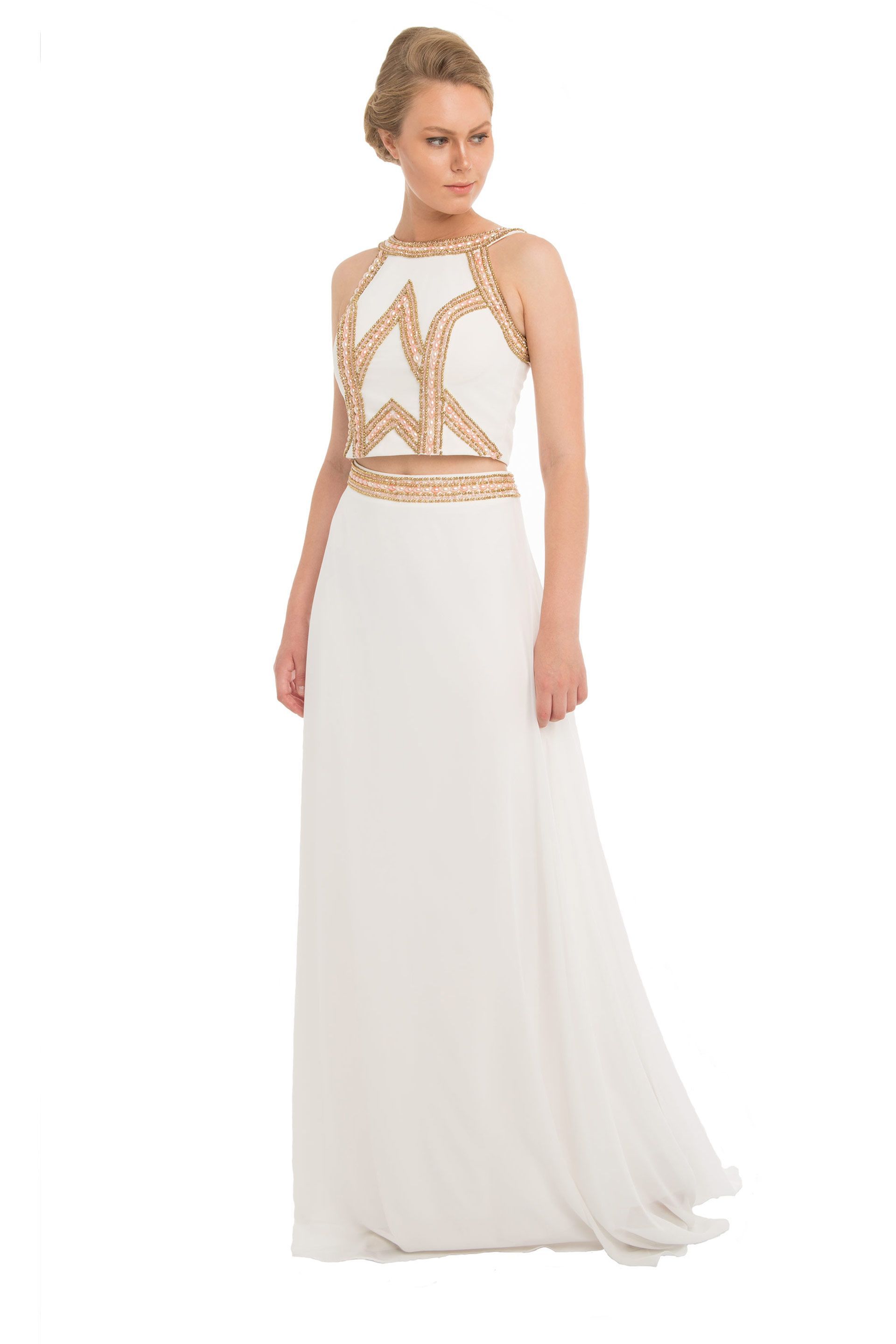 - Kol Boyu İkili Takım Balık Abiye Elbise